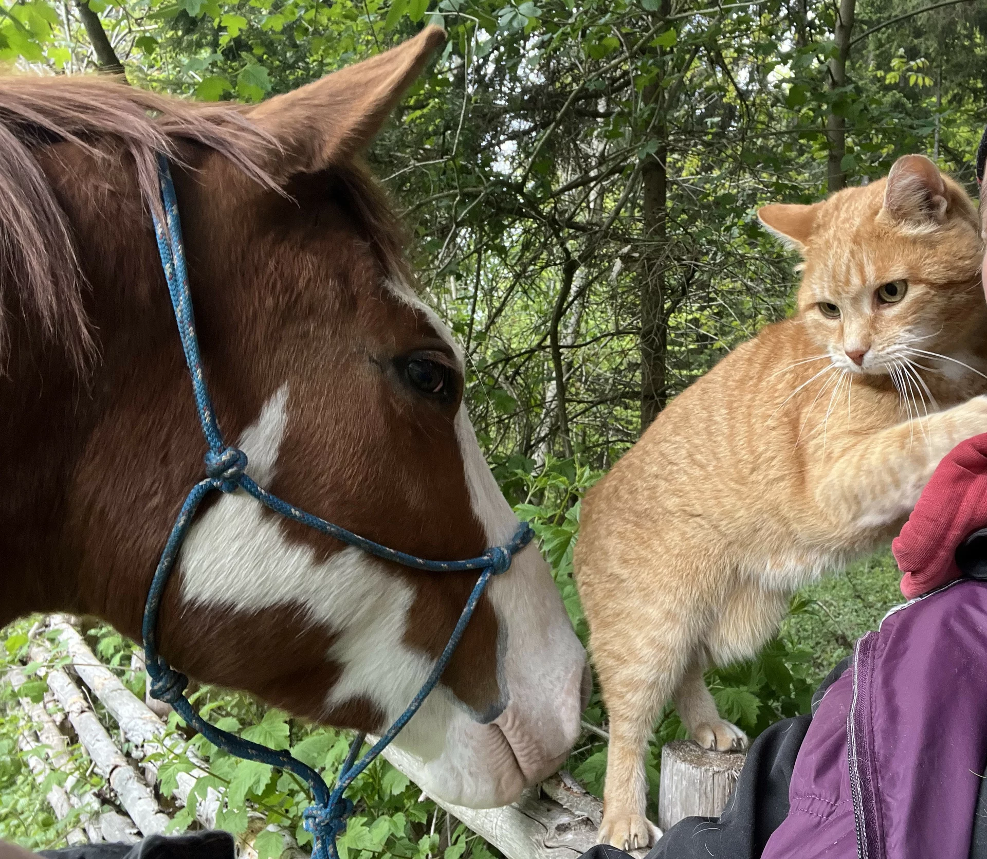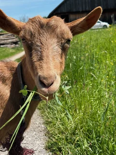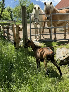 Das vierbeinige Inventar des Hofes: unsere 4köpfige Pferdecrew, die spazieren gehenden Ziegen Adele und Edeltraut, die fleißig arbeitende Hühnerschar und die schönsten Kater der Welt lassen sich gerne beobachten, noch lieber füttern und sogar streicheln.